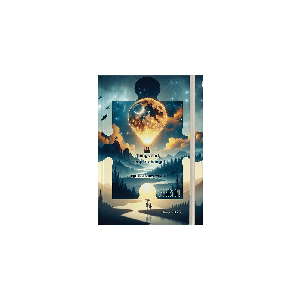 Ημερήσιο ημερολόγιο με εξώφυλλο με ατμοσφαιρικά τοπία. Διαθέτει σκληρό εξώφυλλο με Soft Touch πλαστικοποίηση, λάστιχο και δίχρωμη εκτύπωση στο εσωτερικό σε λευκό χαρτί 70γρ. Περιλαμβάνει το Σάββατο και την Κυριακή σε ξεχωριστές σελίδες, συνοπτικά ημερολόγια και πλάνα, παγκόσμιες ημέρες, εορτολόγιο, Ανατολή – Δύση, φάσεις Σελήνης, χρήσιμες πληροφορίες, καθώς και τηλεφωνικό ευρετήριο.